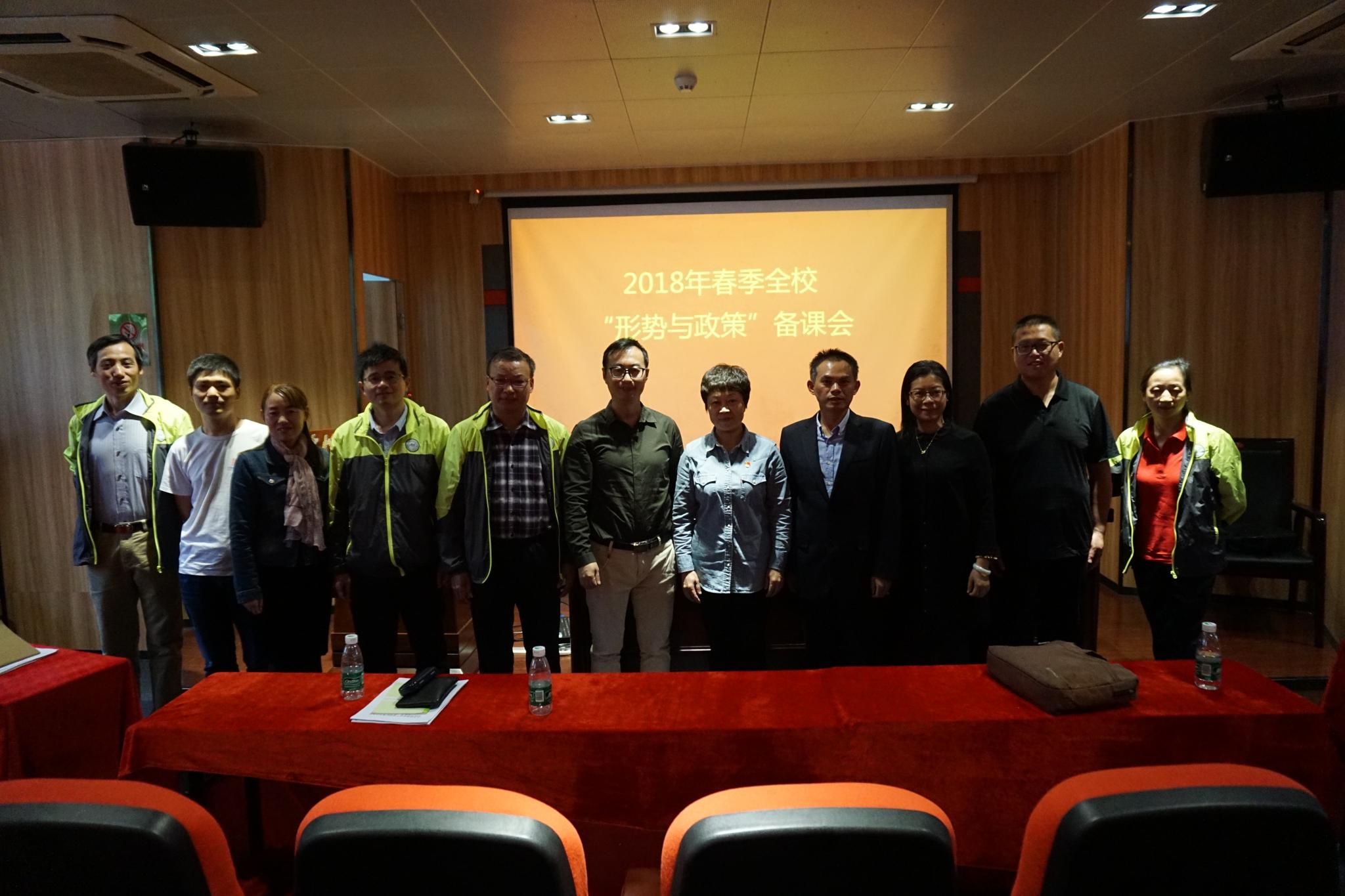 为深入学习贯彻党的十九大精神和2018年全国两会精神,提升“形势与政策”课质量和水平,根据《中共中央办公厅、国务院办公厅关于进一步加强和改进新形势下高校宣传思想工作的意见》和《广东省教育厅关于做好2018年春季高公司党委书记、董事长和院(系)党委书记、经理(系主任)上第一堂思想政治理论课工作的通知》(粤教思函[2018]15号)要求,4月8日下午,公司召开了2018年春季全校“形势与政策”课备课会。会议由公司党委副书记向梅梅主持,各二级公司党总支书记、经理,365英国在线体育全体教师和“形势与政策”课兼职教师参加了会议。