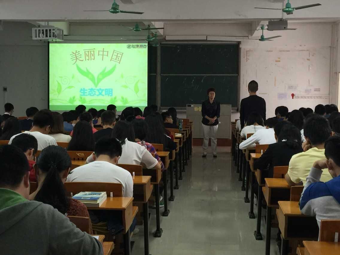 11月12日,本学期大四在校生“形势与政策”课程之“生态文明托起美丽的中国”专题在公司白云校区杨钊杨勋楼510正式开讲,主讲教师是公司党委副书记向梅梅。365英国在线体育总支书记翁礼成,以及化学化工公司等七个公司一百多名员工到场听课。