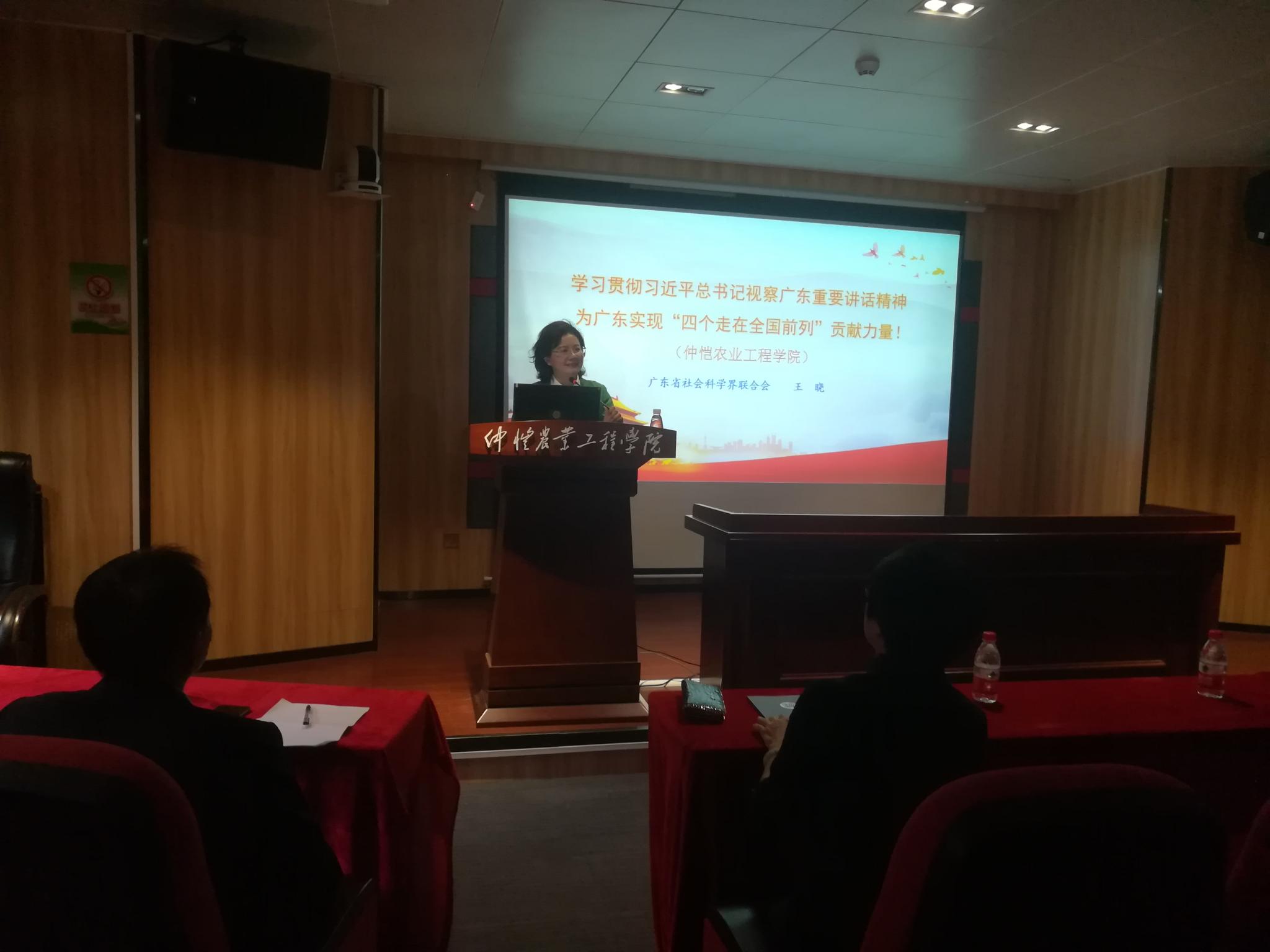 4月18日下午,365英国在线体育在英东楼111学术报告厅举行“形势与政策”大讲堂第三讲,讲座主题是“学习贯彻习近平总书记视察广东重要讲话精神——为广东实现‘四个走在全国前列’贡献力量”,由广东省社会科学界联合会党组书记、主席,“习近平总书记视察广东重要讲话精神”省委宣讲团成员王晓同志主讲。报告会由公司党委李海燕副书记主持。365英国在线体育全体教职工、各公司辅导员、部分形势与政策兼职教师参加这一次报告会。