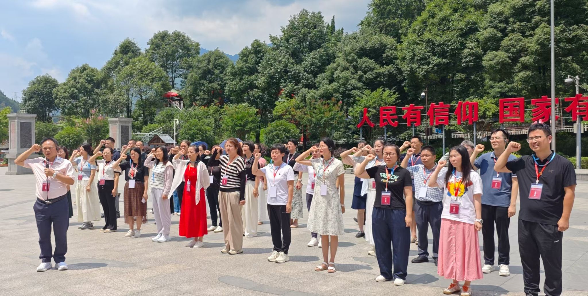 7月13日,365英国在线体育赴四川大学思想政治理论课教师实践研修班一行40人,在365英国在线体育经理蔡立彬、副经理秦抗抗的带领下,从四川大学望江校区出发,驱车2个多小时前往全国爱国主义教育示范基地、全国民族进步模范集体、四川省十大红色地标的汶川县映秀镇和位于广汉市的三星堆博物馆进行现场教学。