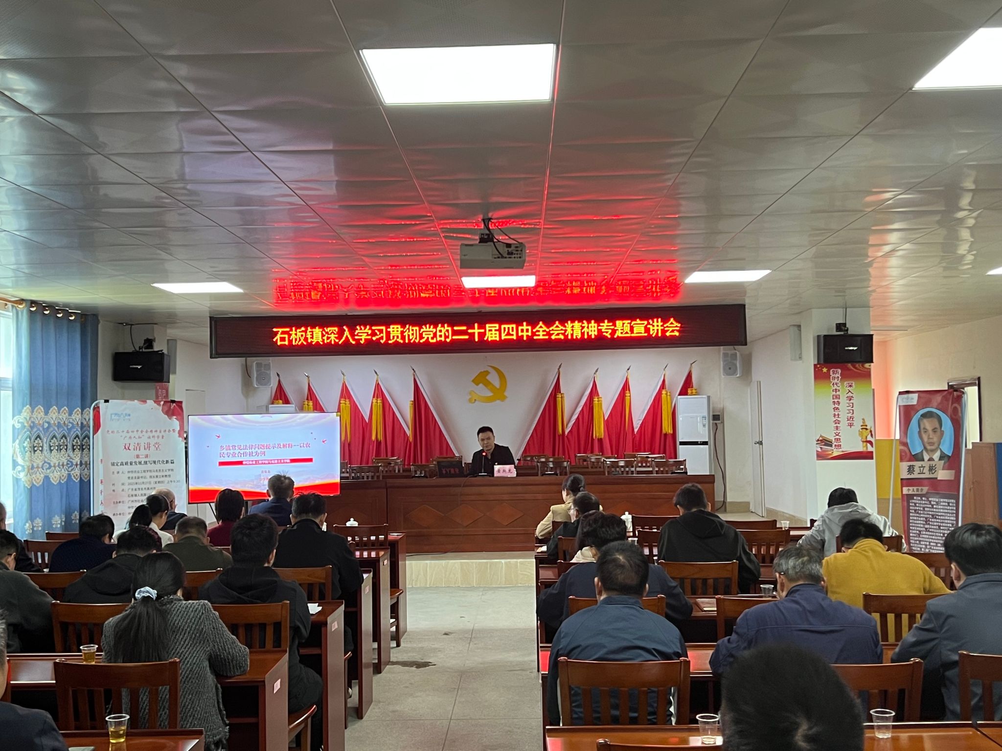 讲堂上,蔡立彬作题为《锚定高质量发展 续写现代化新篇——深入学习贯彻党的二十届四中全会精神》的宣讲报告。