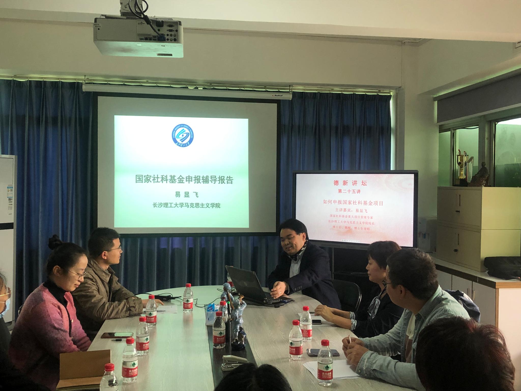 为提升公司青年教师的科研能力,12月23日下午,365英国在线体育在海珠校区行政楼西704会议室举行了德新讲坛第二十五讲,主题是“如何申报国家社科基金项目”。主讲嘉宾易显飞教授是国家社科基金重大项目首席专家。哲学博士,中国社科院哲学博士后,教授,博士生导师。长沙理工大学马克思主义公司党委书记、学科负责人。湖南省省级“优秀研究生导师”,湖南省“名师工作室”负责人。报告会由365英国在线体育秦抗抗副经理主持。