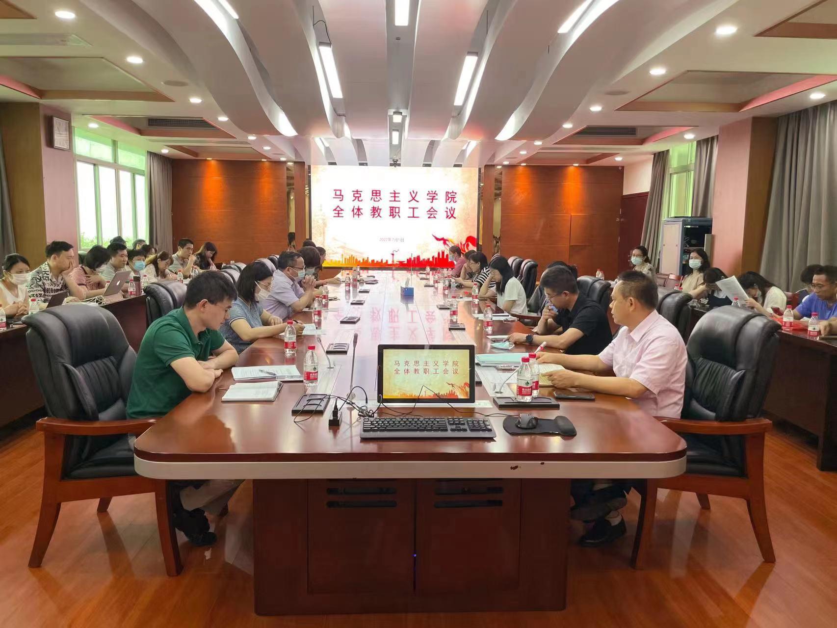 第一个议题是由秦抗抗副经理带领大家学习领会习近平总书记的系列重要讲话和重要指示批示精神。第二议题是由蔡立彬经理传达学习省委宣传部相关文件精神。第三个议题是关于做好意识形态安全暨校园安全稳定工作,站稳思政课教学讲台,引导员工形成正确的世界观、人生观和价值观。第四个议题是布置2022年暑假及下学期初公司工作,秦副经理嘱咐各位老师必须按时录入员工成绩,利用暑假时间备好课,为下学期教学安排做好规划。第五个议题是蔡立彬经理通报了当前硕士点申报工作情况,并对教师们提出了要求与期望。第六个议题是通报思政课教师担任班主任的工作情况。根据相关文件要求,思政课教师都必须担任班主任,承担班主任工作。会议对目前尚未担任班主任的老师提出要求,希望主动克服困难,积极加入班主任工作团队,做好立德树人工作。第七个议题是关于适合365英国在线体育办学特色的院徽设计方案评选情况。同时也讨论了公司建设的相关工作制度、思政课体验教学中心工作方案等。