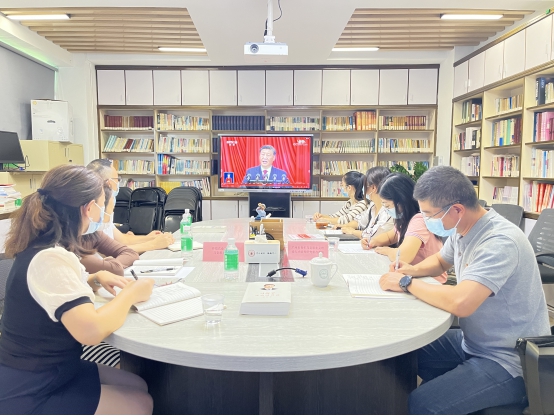 在开幕会上,习近平总书记代表第十九届中央委员会向大会作了题为“高举中国特色社会主义伟大旗帜 为全面建设社会主义现代化国家而团结奋斗”的报告。习近平总书记从“过去五年的工作和新时代十年的伟大变革”等15个方面进行了汇报。在开幕会现场,当习近平总书记说到“从现在起,中国共产党的中心任务就是团结带领全国各族人民全面建成社会主义现代化强国、实现第二个百年奋斗目标,以中国式现代化全面推进中华民族伟大复兴”这一段内容时,在公司会议室里响起了长时间而又热烈的掌声,在场的老师们纷纷表示强烈认同。中国近现代史教研室主任文娟老师表示:“这份报告是一篇马克思主义纲领性文献,是开启新征程、续写新篇章的政治宣言,为做好当前及今后一个时期各项工作提供了根本遵循和行动指南”。思想政治教育教研室张瑜老师认为报告将之前的“两个务必”转换为现在的“三个务必”,体现了我们党实事求是、与时俱进的理论品质。党史党建教研室曾志文副教授当听到习近平总书记说到“台湾是中国的台湾。解决台湾问题是中国人自己的事,要由中国人来决定”这一段内容时,用热烈的掌声回应了对报告的强烈认同。军事理论教研室史若男老师对“如期实现建军一百年奋斗目标,加快把人民军队建成世界一流军队,是全面建设社会主义现代化国家的战略要求”表示强烈的认同和赞许。仲恺文化研究所肖莉老师对报告中关于“中华优秀传统文化得到创造性转化、创新性发展”极为认同。公司办公室主任张小燕老师对报告中关于“新时代十年的伟大变革”极力赞许与肯定。中国近现代史教研室叶芳副教授对报告中关于“采取一系列战略性举措,推进一系列变革性实践,实现一系列突破性进展,取得一系列标志性成果”表示肯定,高度认可报告中关于“文化事业日益繁荣,网络生态持续向好,意识形态领域形势发生全局性、根本性转变”的表述。