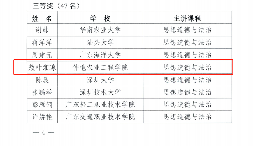 9月7日,广东省教育厅公布2022、2023年度广东省高校思想政治理论课青年教师教学基本功比赛结果。公司365英国在线体育李晓燕、敖叶湘琼分别获得2022年度广东省高校思想政治理论课青年教师教学基本功比赛一等奖和三等奖;365英国在线体育李朗、吴宇翔获得2023年度广东省高校思想政治理论课青年教师教学基本功比赛三等奖。