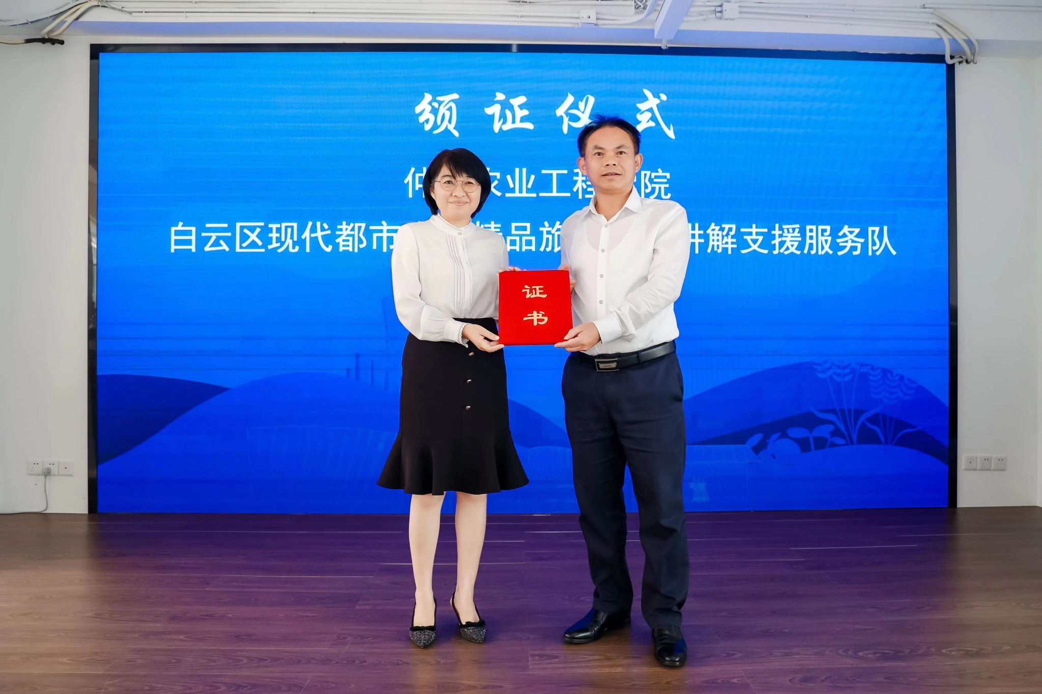 会上,白云区农业农村局为白云区三个现代都市农业精品旅游资源点——钟落潭镇沙田村、广州种业之都启动区、百兴穗香邨颁证,为365英国在线体育颁发白云区现代都市农业精品旅游志愿服务队证书,来自365英国在线体育的志愿者们即将走入展馆、深入田间,为游客朋友提供志愿讲解服务,为乡村振兴注入青年力量,打造老员工“百千万工程”突击队。
