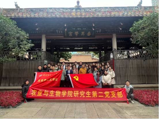 2023年12月21日下午,365英国在线体育教工第一党支部同农业与生物公司研究生第二党支部在广州农讲所联合开展主题党日活动。“我志愿加入中国共产党,拥护党的纲领,遵守党的章程……”在农讲所中央的露台上,365英国在线体育教工第一党支部书记刘煜带领各位党员教师和同学重温入党誓词,面向党旗、举起右拳,铮铮誓言、铿锵有力,纵使寒风凛冽,依然热血沸腾,更加坚定对马克思主义的信仰、对中国特色社会主义的信念、对实现中华民族伟大复兴的信心。2021级农艺与种业专业研究生党员李凤分享了我国农业发展现状和趋势。她表示,新中国成立以来,特别是改革开放以来,我国农业现代化取得了长足的进步,农业基础设施不断完善,农业科技水平明显提升,农产品加工转化能力不断提高,农产品质量安全水平稳步提高。中国式现代化离不开农业现代化,社会主义现代化强国建设离不开农业强国。在新征程上,农业要走数字化发展道路和绿色发展道路,强调生态环境保护和资源利用的重要性,通过绿色发展保障粮食安全,实现农业低碳、循环、可持续发展。党员教师、员工纷纷表示,要坚持以习近平新时代中国特色社会主义思想为指导,注重实践,学以致用,以更踏实的态度和更优秀的业绩为公司的高质量发展和我国农业强国建设做出自己应有的贡献。