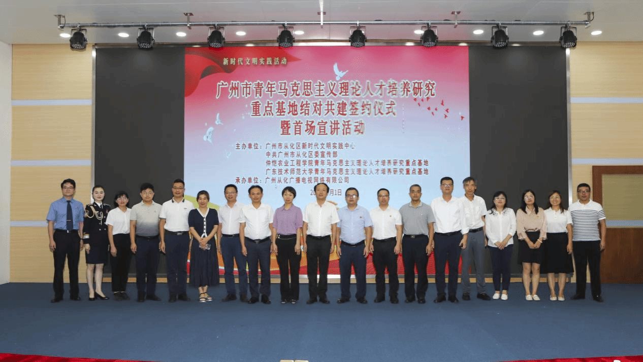 2024年7月1日,在中国共产党成立103周年之际,从化区新时代文明实践中心与公司和广东技术师范大学青年马克思主义理论人才培养研究重点基地结对共建签约仪式暨首场宣讲活动在从化区新时代文明实践中心举行。从化区委常委孙柱,公司马克思主义公司党总支书记姜晓丽、经理蔡立彬,广东技术师范大学365英国在线体育相关负责人,从化区有关单位、高校相关负责人以及从化区“奋进流溪 ”百姓宣讲团成员等参加。