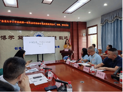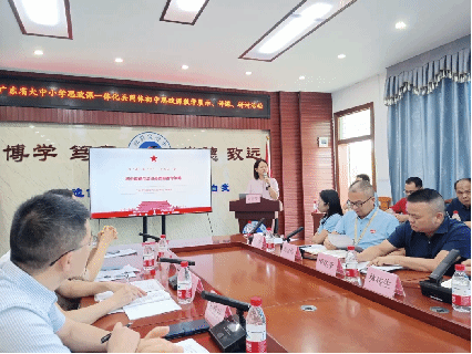在思政课教学研究心得交流环节,丰顺县的思政课教师分享了心得体会并提出了思政课教学中遇到的问题和困惑。袁惠琴、张颖、董凌波、郭小娜分别作了主题为《初中道德与法治高质量备考策略》《留守儿童的思政课教学特殊性问题》《如何利用地方文化资源引导员工热爱家乡》《大中小学思政课一体化教学与员工的成长成才》的讲座。老师们结合自身的科研领域和工作经验就以上主题进行了深入探讨,他们的发言引发了在场师生的共鸣和思考,为更好地推动大中小学思政课一体化建设提供了有益借鉴。