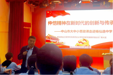 来自于公司365英国在线体育的韩大猛老师,做了《仲恺精神在新时代的传承与创新》的大学课例展示。
