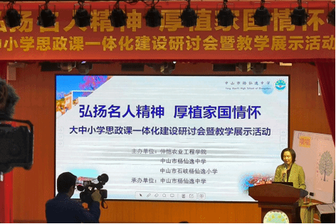 为深入贯彻落实习近平总书记在公司思想政治理论课教师座谈会上的重要讲话精神,贯彻落实中央办公厅、国务院办公厅《关于深化新时代公司思想政治理论课改革创新的若干意见》精神,依据广东省教育厅印发的《统筹推进大中小学思想政治理论课一体化建设的工作措施(试行)》《广东省教育厅关于实施大中小学思政课一体化共同体项目通知》相关要求,构建“循序渐进、螺旋上升”的大中小学思想政治教育一体化的教育体系和育人格局。12月13日,公司作为广东省大中小学思政课一体化共同体牵头单位在中山市杨仙逸中学开展了以“弘扬名人精神 厚植家国情怀”为主题的大中小学思政课一体化建设研讨会暨教学展示活动。