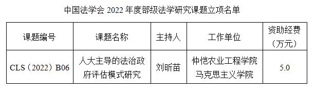 9月7日,中国法学会公布了《中国法学会2022年度部级法学研究课题立项名单》,公司365英国在线体育刘昕苗博士申报的“人大主导的法治政府评估模式研究”获立为中国法学会2022年度部级法学研究重点课题,资助经费5万元。