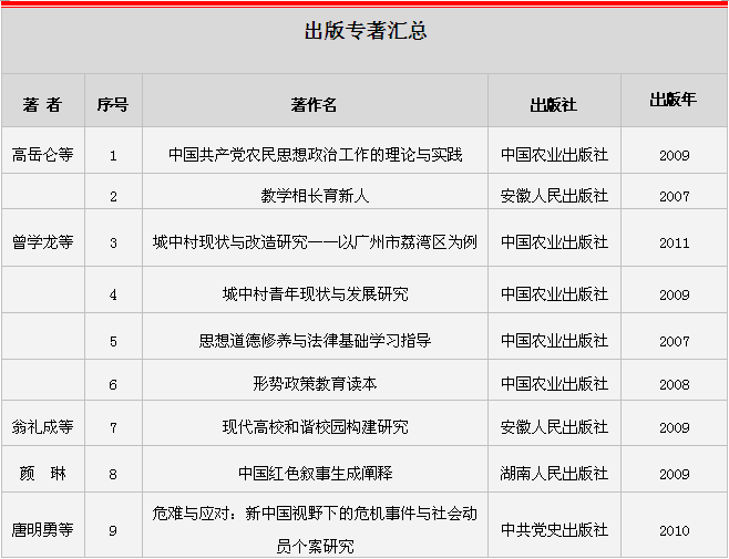2009-2010年度出版专著汇总