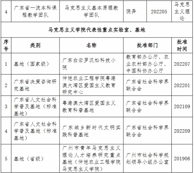 365英国在线体育除了有国家级平台1个、省级平台5个、广州市平台2个之外,还有6个校级研究机构,分别为:党建与德育研究所、农村社会发展研究所、中国特色社会主义理论体系研究所、仲恺文化研究所、廖承志与池田大作研究中心、高等教育研究所;有14个教学基地,其中公司廖仲恺何香凝纪念馆既是广东省文物保护单位,也是广州市爱国主义教育基地、广东省统一战线基地、中国国民党革命委员会党史教育基地;江西泰和马家洲集中营爱国主义教育基地既是红色旅游基地,也是爱国主义教育基地和统一战线传统教育基地。基地总体上按照课程教学需要,定期组织员工实地考察,开展合作研究。在基地建设中,本学科结合农业院校特点积极创新思政课教学,注重劳模精神、劳动精神和工匠精神的培育,并取得较好成效,于2019年被评为全国劳模文化研究联盟会员单位。此外,本学科还有省级科